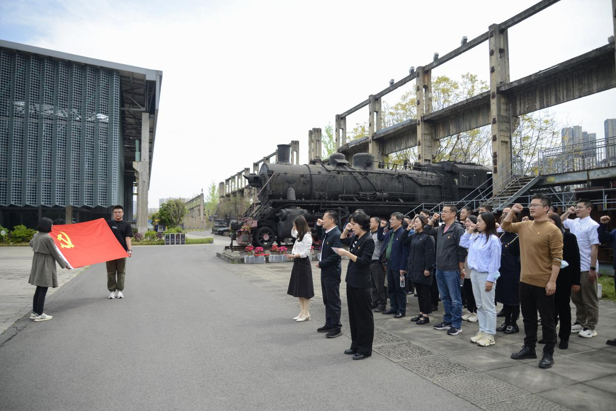 “我志愿加入中國共產(chǎn)黨……”,在重慶工業(yè)文化博覽園廣場,三位黨支部書記共同帶領(lǐng)黨員面向黨旗,重溫入黨誓詞,鏗鏘有力的宣誓聲響徹廣場上空,回蕩在工業(yè)遺址的鋼筋鐵骨間,錚錚誓詞重溫初心記憶,拳拳之心筑牢愛黨信念。